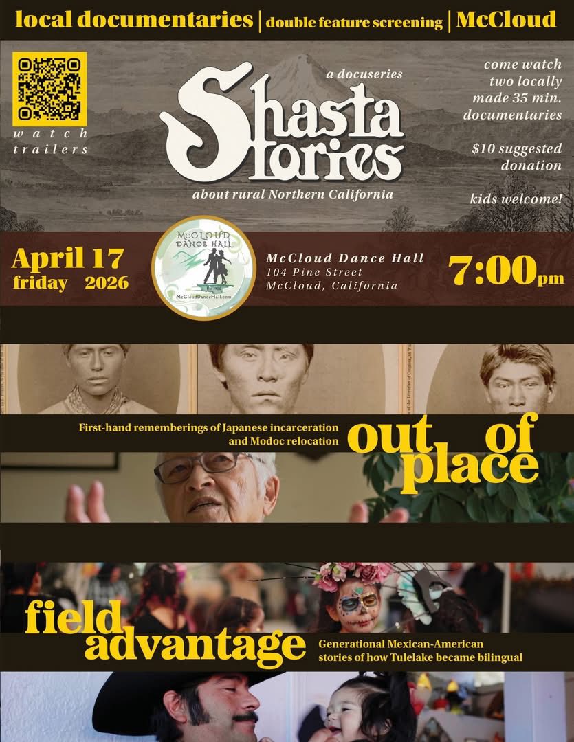 We are excited to screen two new episodes of our docuseries Shasta Stories at the historic McCloud Dance Hall the evening of April 17th. The even is about an hour and a half with a Q&A with Autie Carlisle, the director afterwards. Films start at 7pm and feel free to arrive early!